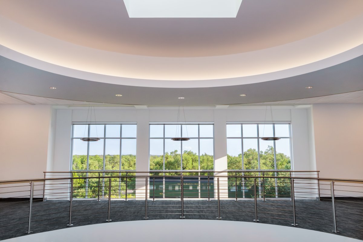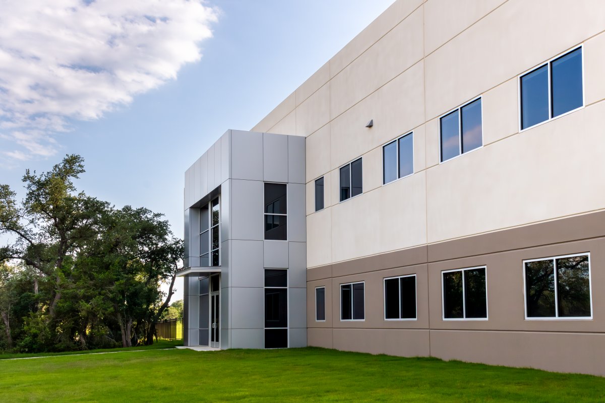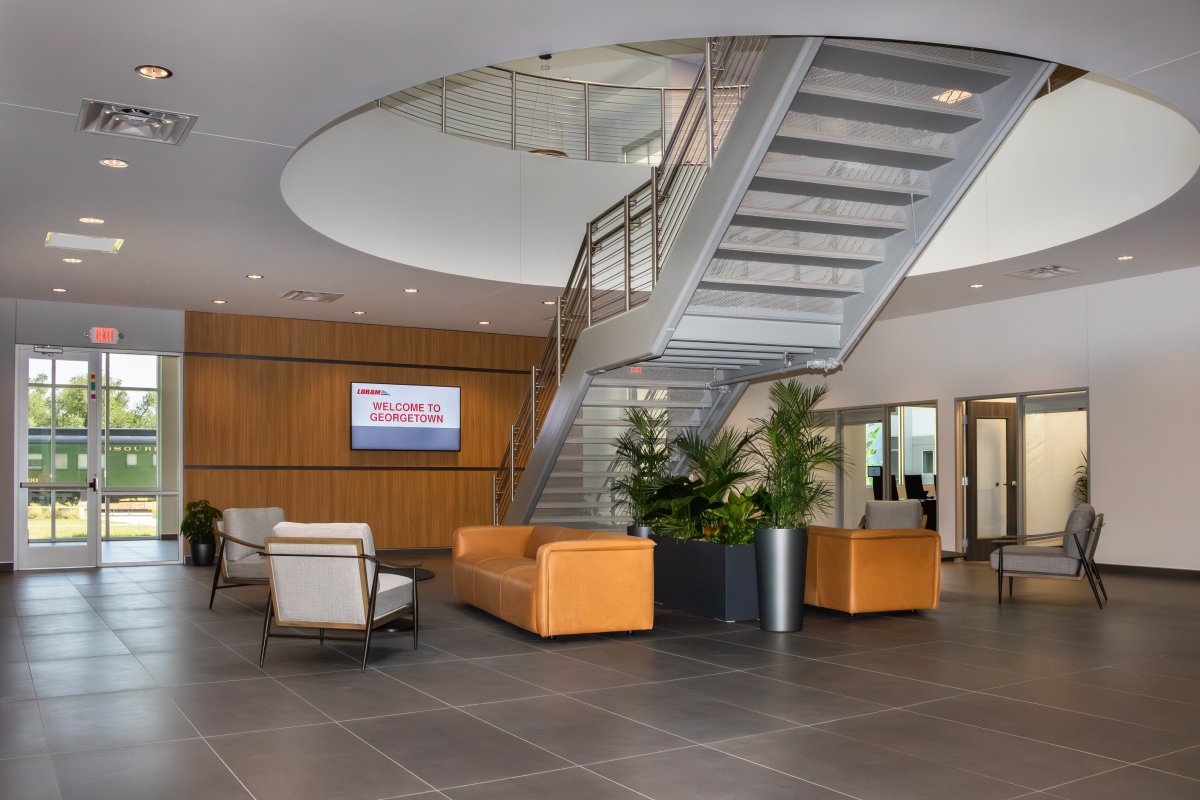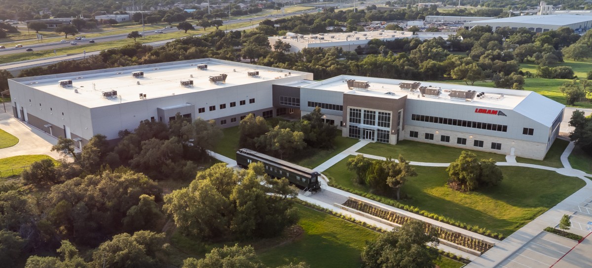 New Corporate Complex comprises a corporate office and facility for producing and manufacturing maintenance-of-way equipment and inspection technologies.